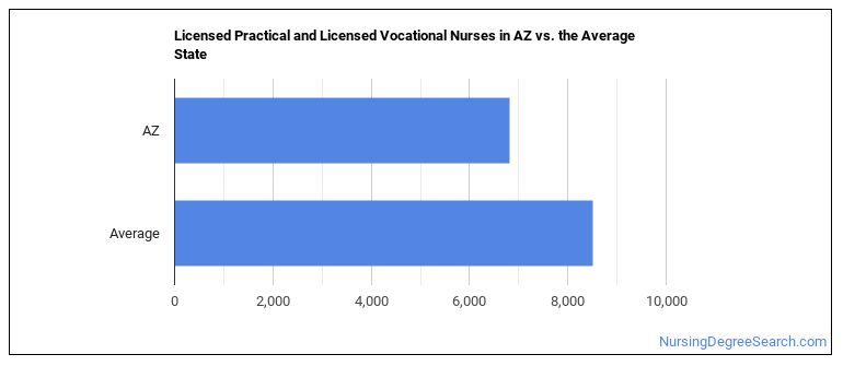 The typical state has 8,510 Licensed Practical and Licensed Vocational Nurses working in it, which means Arizona has fewer Licensed Practical and Licensed Vocational Nurses than average.