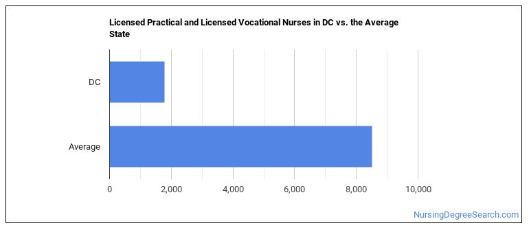 The typical state has 8,510 Licensed Practical and Licensed Vocational Nurses working in it, which means District of Columbia has fewer Licensed Practical and Licensed Vocational Nurses than average.