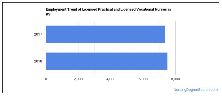 The BLS is projecting 520 annual Licensed Practical and Licensed Vocational Nurses job openings in Kansas, and 7,470 total jobs in the year 2026.