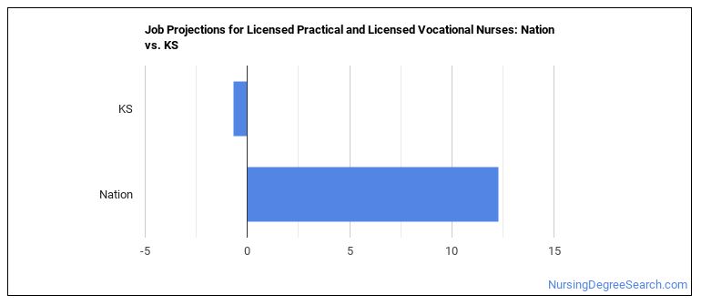 Employment for Licensed Practical and Licensed Vocational Nurses in Kansas is expected to decrease.