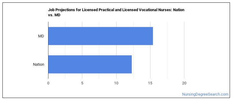 You’re in luck! Jobs for Licensed Practical and Licensed Vocational Nurses in Maryland are projected to grow and these jobs tend to pay higher than average.