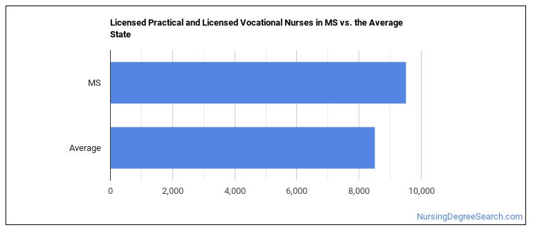 The typical state has 8,510 Licensed Practical and Licensed Vocational Nurses working in it, which means Mississippi has more Licensed Practical and Licensed Vocational Nurses than average.