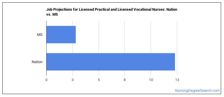 You’re in luck! Jobs for Licensed Practical and Licensed Vocational Nurses in Mississippi are projected to grow and these jobs tend to pay higher than average.