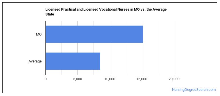The typical state has 8,510 Licensed Practical and Licensed Vocational Nurses working in it, which means Missouri has more Licensed Practical and Licensed Vocational Nurses than average.