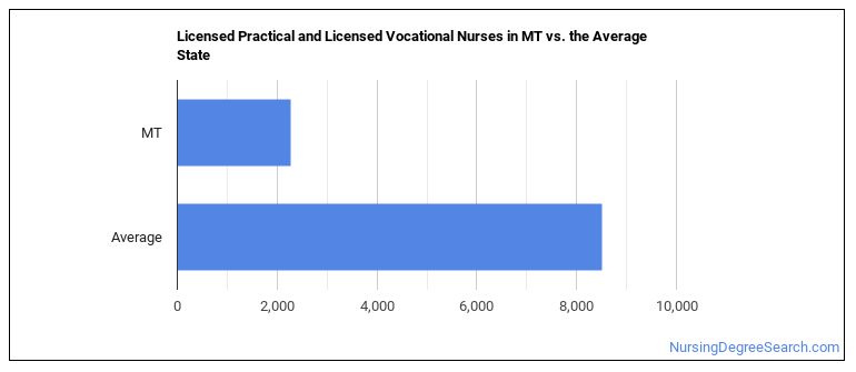 The typical state has 8,510 Licensed Practical and Licensed Vocational Nurses working in it, which means Montana has fewer Licensed Practical and Licensed Vocational Nurses than average.