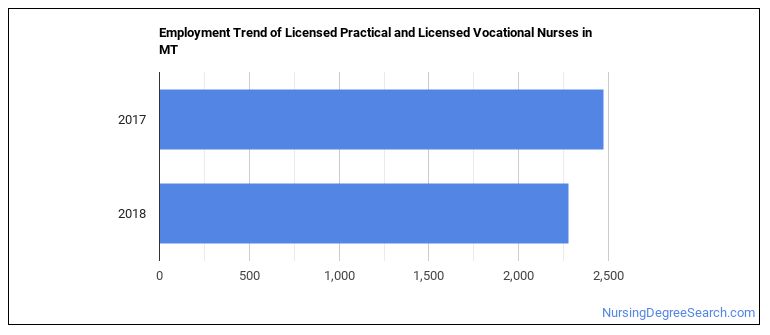 The BLS is projecting 220 annual Licensed Practical and Licensed Vocational Nurses job openings in Montana, and 2,970 total jobs in the year 2026.