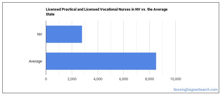 The typical state has 8,510 Licensed Practical and Licensed Vocational Nurses working in it, which means Nevada has fewer Licensed Practical and Licensed Vocational Nurses than average.
