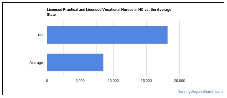 The typical state has 8,510 Licensed Practical and Licensed Vocational Nurses working in it, which means North Carolina has more Licensed Practical and Licensed Vocational Nurses than average.