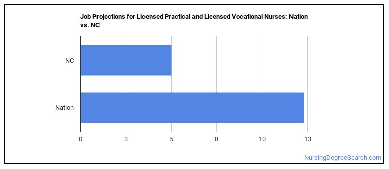 You’re in luck! Jobs for Licensed Practical and Licensed Vocational Nurses in North Carolina are projected to grow and these jobs tend to pay higher than average.