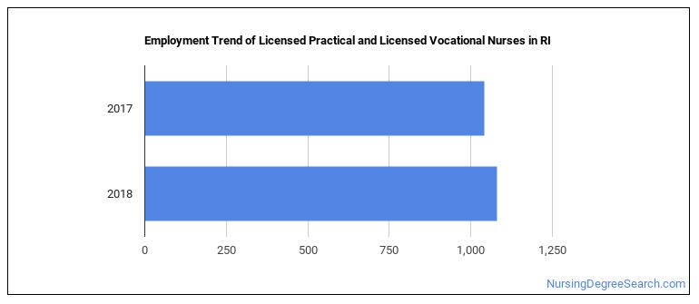 Projected employment for Licensed Practical and Licensed Vocational Nurses in Rhode Island is growing slower than average.