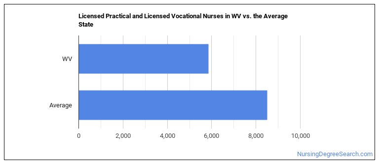The typical state has 8,510 Licensed Practical and Licensed Vocational Nurses working in it, which means West Virginia has fewer Licensed Practical and Licensed Vocational Nurses than average.