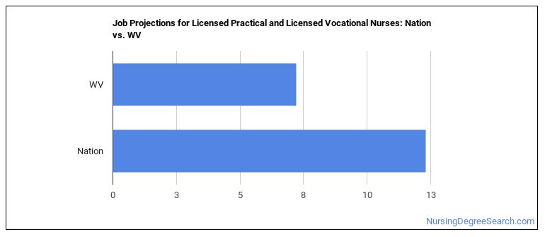 You’re in luck! Jobs for Licensed Practical and Licensed Vocational Nurses in West Virginia are projected to grow and these jobs tend to pay higher than average.