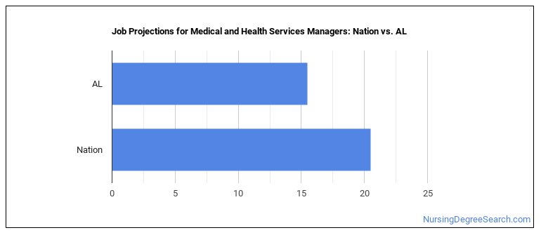 You’re in luck! Jobs for Medical and Health Services Managers in Alabama are projected to grow and these jobs tend to pay higher than average.