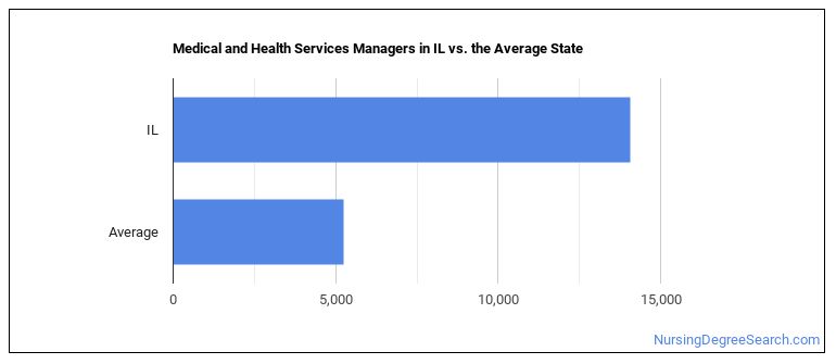 The BLS is projecting 1,170 annual Medical and Health Services Managers job openings in Illinois, and 14,600 total jobs in the year 2026.