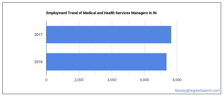 The BLS is projecting 860 annual Medical and Health Services Managers job openings in Indiana, and 9,890 total jobs in the year 2026.