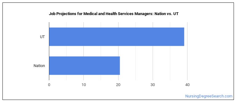 Projected employment for Medical and Health Services Managers in Utah is growing faster than average.