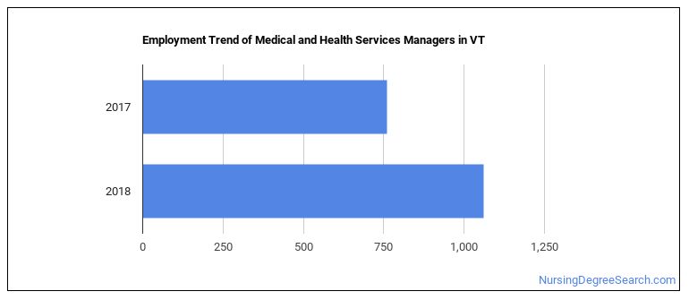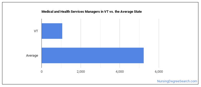 The BLS is projecting 80 annual Medical and Health Services Managers job openings in Vermont, and 970 total jobs in the year 2026.