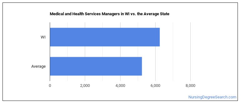 The typical state has 5,230 Medical and Health Services Managers working in it, which means Wisconsin has more Medical and Health Services Managers than average.