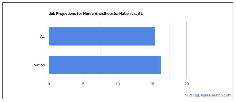 Projected employment for Nurse Anesthetists in Alabama is growing faster than average.