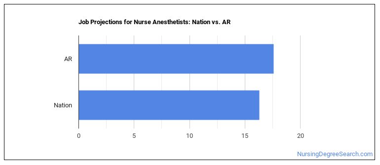 Projected employment for Nurse Anesthetists in Arkansas is growing faster than average.