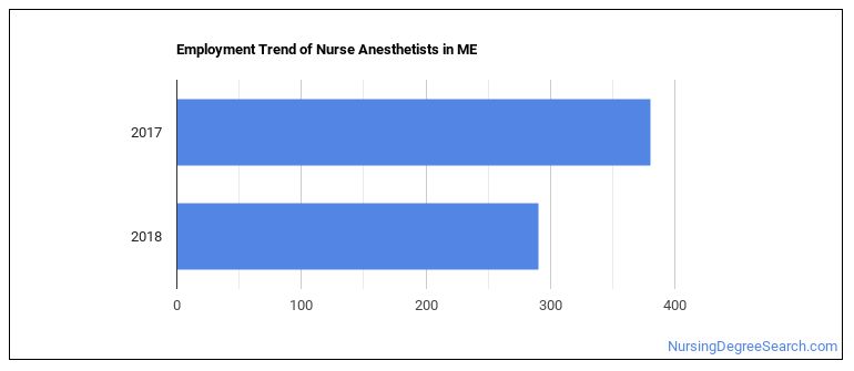 The BLS estimates 20 annual job openings, and a total of 440 jobs for Maine Nurse Anesthetists in 2026.