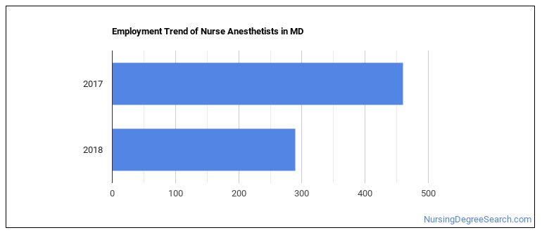 The BLS estimates 40 annual job openings, and a total of 620 jobs for Maryland Nurse Anesthetists in 2026.