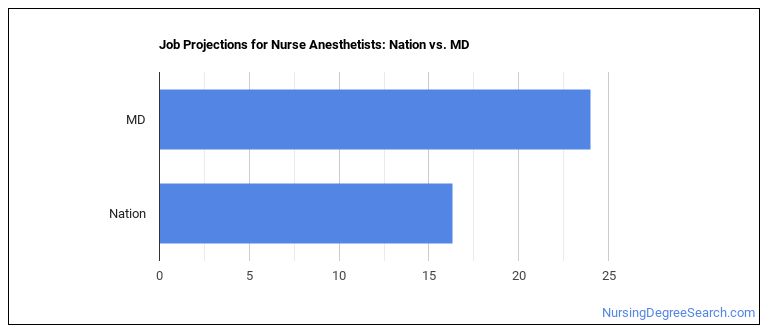 Projected employment for Nurse Anesthetists in Maryland is growing faster than average.