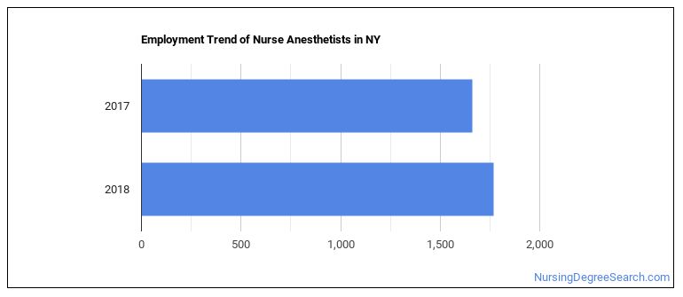 The BLS estimates 120 annual job openings, and a total of 1,910 jobs for New York Nurse Anesthetists in 2026.