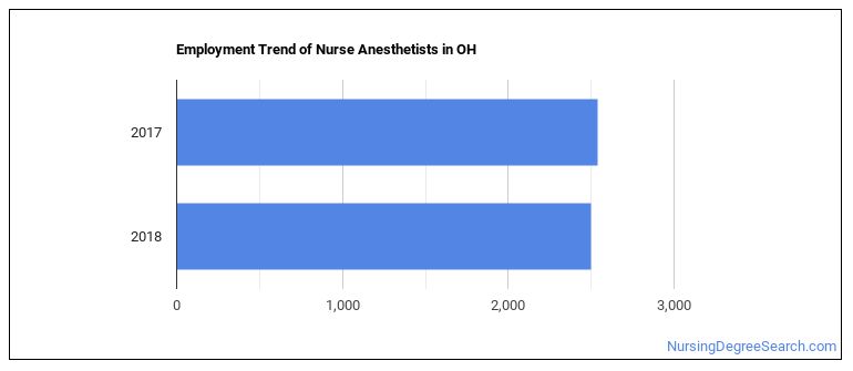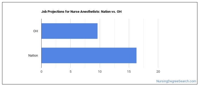 Projected employment for Nurse Anesthetists in Ohio is growing faster than average.