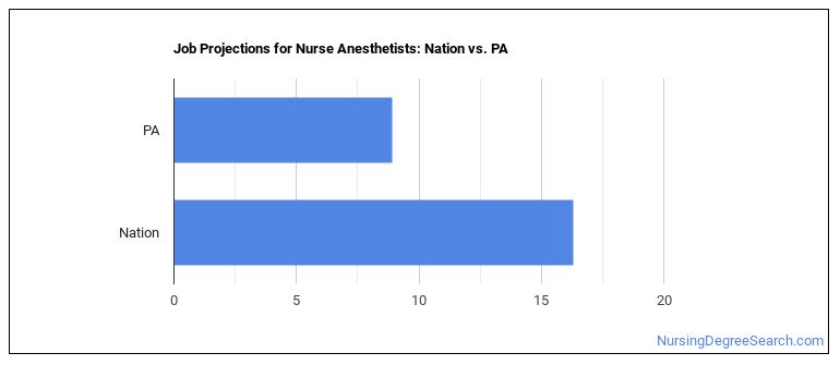 Projected employment for Nurse Anesthetists in Pennsylvania is growing faster than average.