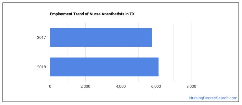 The BLS is projecting 380 annual Nurse Anesthetists job openings in Texas, and 6,100 total jobs in the year 2026.