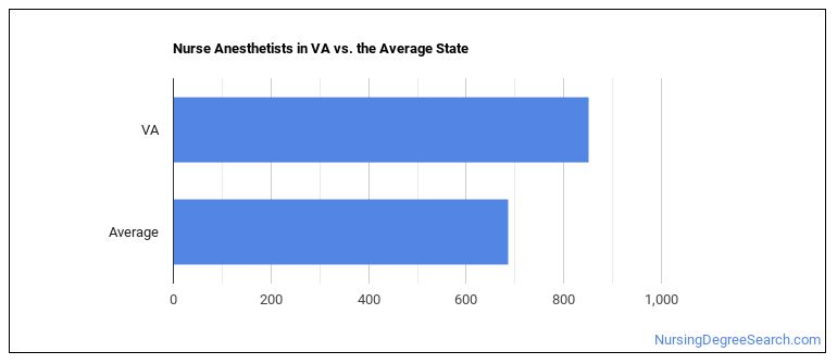 The typical state has 685 Nurse Anesthetists working in it, which means Virginia has more Nurse Anesthetists than average.