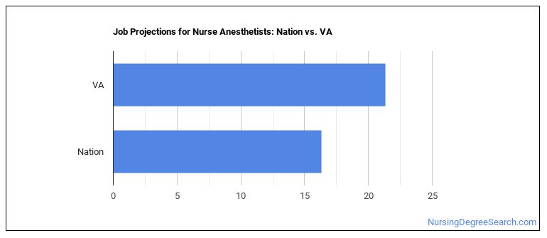 • Projected employment for Nurse Anesthetists in Virginia is growing faster than average.