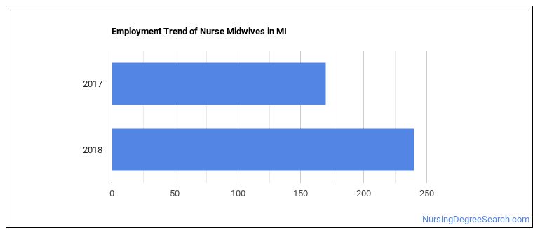 Projected employment for Nurse Midwives in Michigan is growing faster than average.
