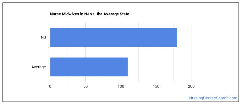 The typical state has 110 Nurse Midwives working in it, which means New Jersey has more Nurse Midwives than average.