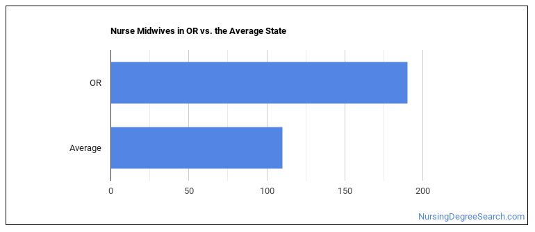 The typical state has 110 Nurse Midwives working in it, which means Oregon has more Nurse Midwives than average.