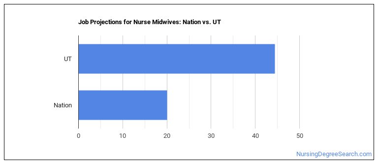 Projected employment for Nurse Midwives in Utah is growing faster than average.