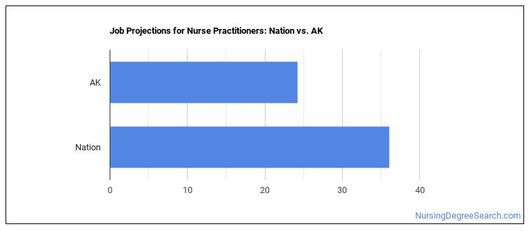Projected employment for Nurse Practitioners in Alaska is growing faster than average.