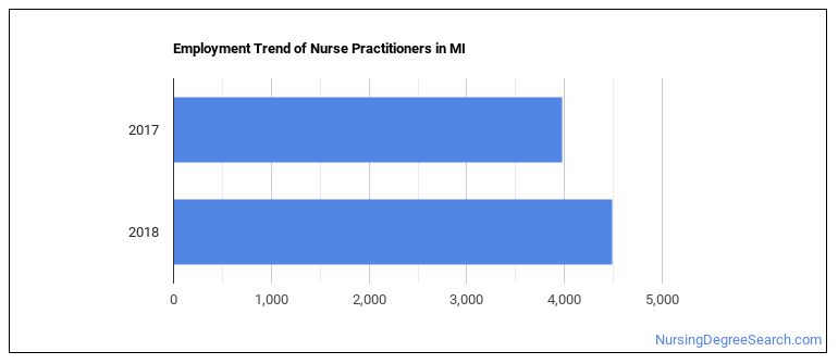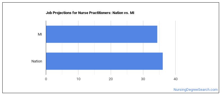 Projected employment for Nurse Practitioners in Michigan is growing faster than average.