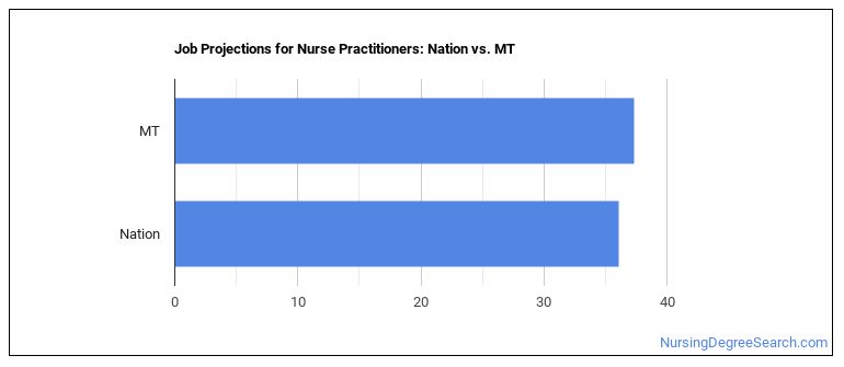 Projected employment for Nurse Practitioners in Montana is growing faster than average.