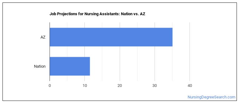 Projected employment for Nursing Assistants in Arizona is growing faster than average.