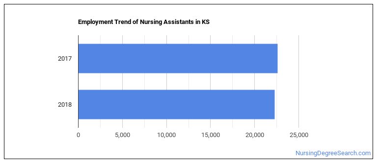 Projected employment for Nursing Assistants in Kansas is growing slower than average.