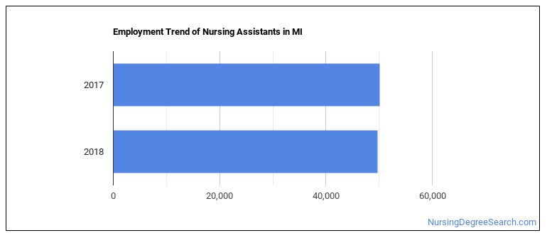 The BLS estimates 6,480 annual job openings, and a total of 55,980 jobs for Michigan Nursing Assistants in 2026.