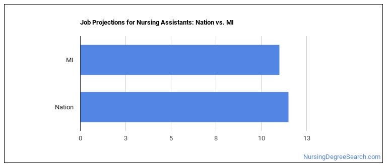 Projected employment for Nursing Assistants in Michigan is growing faster than average.
