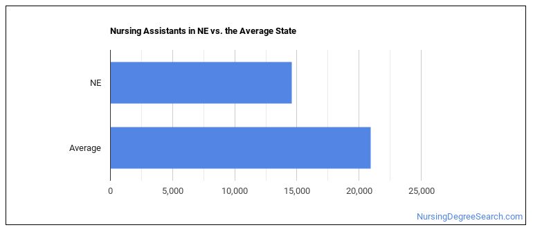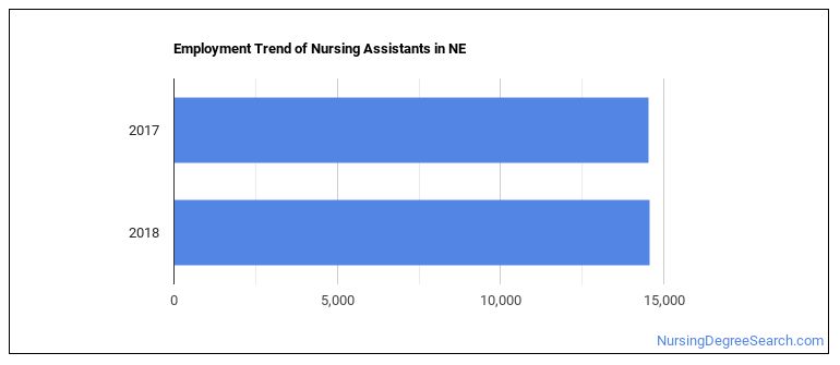The BLS estimates 1,850 annual job openings, and a total of 15,940 jobs for Nebraska Nursing Assistants in 2026.