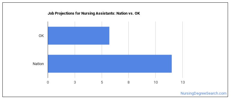 Projected employment for Nursing Assistants in Oklahoma is growing faster than average.