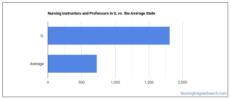 The typical state has 725 Nursing Instructors and Professors working in it, which means Illinois has more Nursing Instructors and Professors than average.