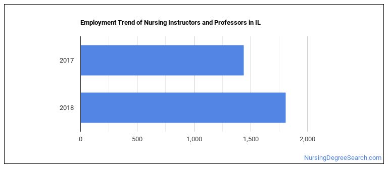 The BLS estimates 150 annual job openings, and a total of 1,820 jobs for Illinois Nursing Instructors and Professors in 2026.