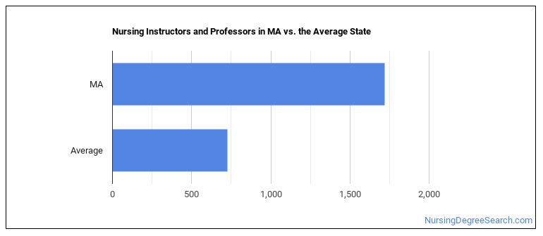 The typical state has 725 Nursing Instructors and Professors working in it, which means Massachusetts has more Nursing Instructors and Professors than average.