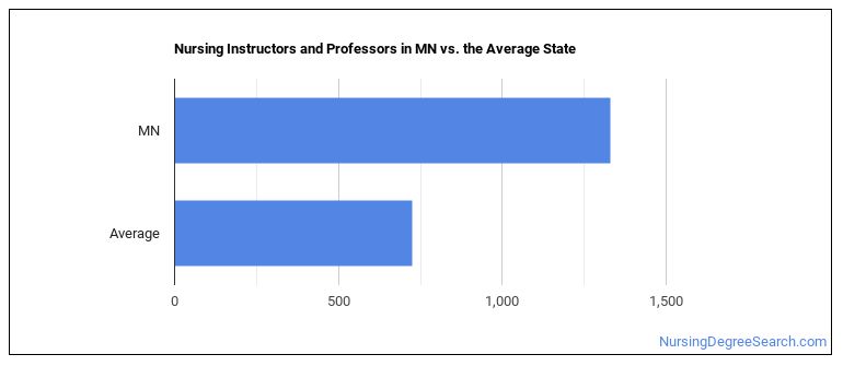 The typical state has 725 Nursing Instructors and Professors working in it, which means Minnesota has more Nursing Instructors and Professors than average.